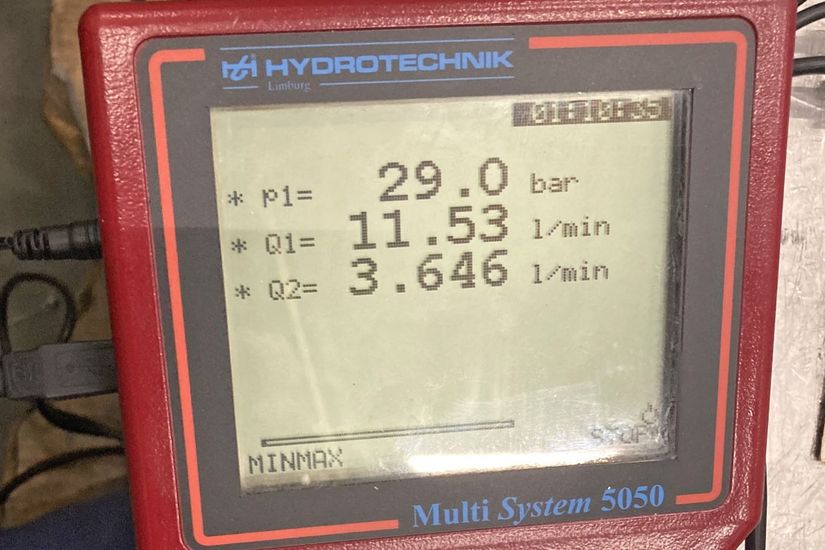 On the one hand, the KNOLL E-PASS system is used to determine the power consumption by the high-pressure pump during the process and, on the other hand, the power actually used for the machining process. The time required is minimal. The machine in question must be shut down for about five minutes in order to install a measuring turbine downstream of the pressure relief valve. This then determines the actual cooling lubricant flow to the machine and the respective pressure during a complete machining cycle. In addition, required data, such as operating hours, electricity as well as investment costs for the conversion, are entered into the computer.