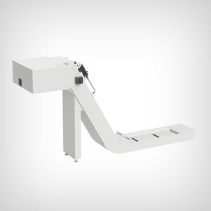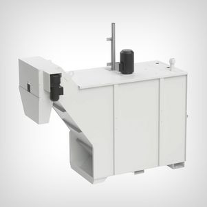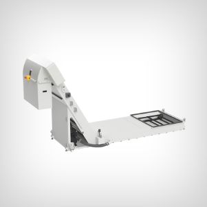 With hopper and screw conveyor. For high capacity of short chips and installation under discharge conveyors.