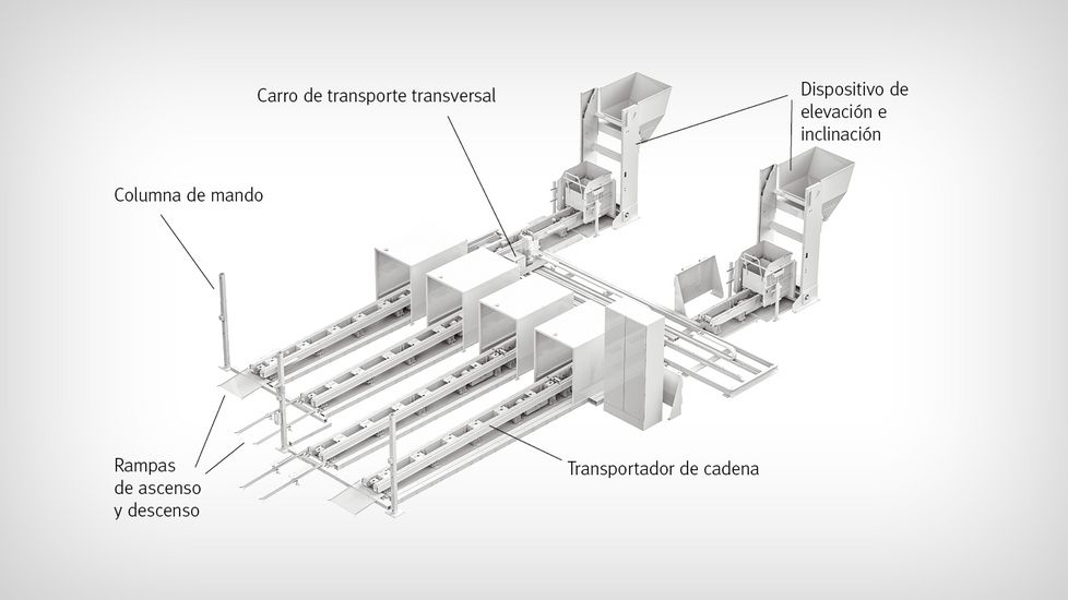 El operario de la máquina empuja los carros portavirutas desde la máquina hasta la planta de procesamiento. Tras introducirlos en uno de los dos transportadores disponibles, el empleado registra mediante un código de barras qué virutas hay en su interior. A continuación, el proceso de eliminación se inicia automáticamente. Ahora las virutas pueden entregarse a la empresa de reciclaje secas y separadas por tipos. Esto se refleja en una mayor remuneración.