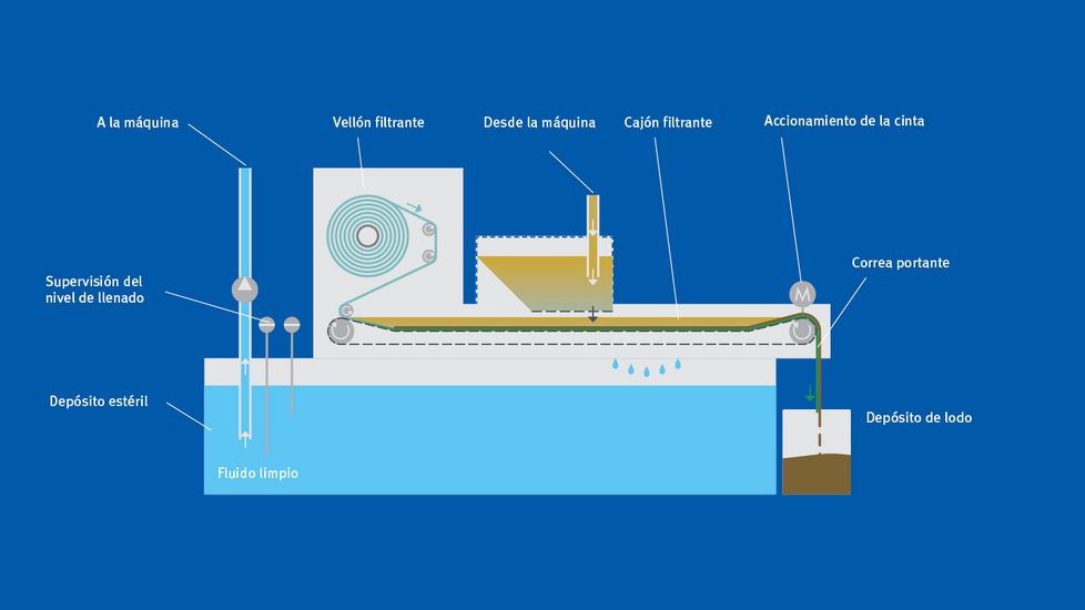 Los filtros de banda gravitacional PF de KNOLL son filtros de banda que sirven para limpiar lubricantes refrigeradores en procedimientos de mecanizado con desprendimiento de virutas.