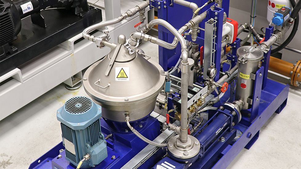 Pour garantir durablement le haut niveau de qualité du lubrifiant réfrigérant et des pièces usinées, des composants supplémentaires sont nécessaires. Ainsi, un filtre sous vide VL1000 de KNOLL est installé. Il est doté d’un non-tissé filtrant de 20 µm qui nettoie le fluide rétro-lavé. Un séparateur centrifuge qui fonctionne en by-pass contribue également à l’entretien du bain. Il empêche que de très fines particules ne s’accumulent dans le lubrifiant réfrigérant. Un séparateur magnétique installé en aval extrait par ailleurs du lubrifiant réfrigérant les particules provenant de l’abrasion de la tuyauterie due aux copeaux d’Inconel. Un séparateur d’huile étrangère est également chargé d’éliminer les éléments indésirables contenus dans le lubrifiant.
