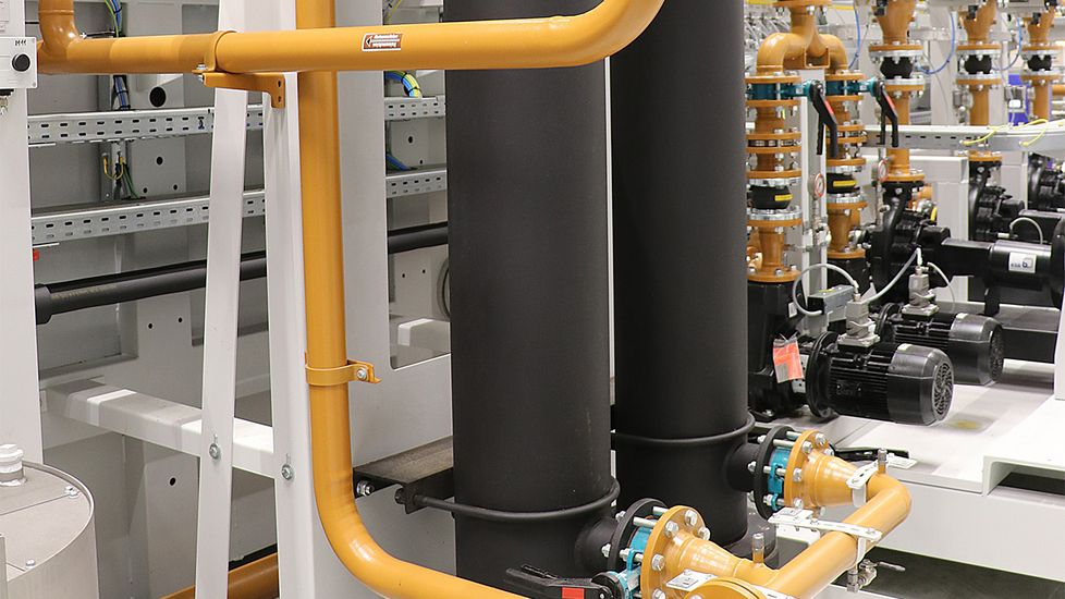 La finesse de filtration nominale requise de 25 µm est atteinte en trois étapes : dans un premier temps, une sédimentation a lieu dans le réservoir d’eau usée. Via un dispositif de levage, le lubrifiant réfrigérant traverse trois filtres à disques conçus en tambour avec une largeur de fente de 0,2 mm et, ensuite, deux filtres à rétro-lavage qui garantissent une qualité de filtration principale de 25 µm.