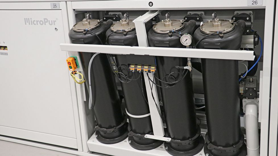 Séduits par le succès de cette microfiltration, les responsables ont décidé de miser sur une filtration complète de la solution aqueuse avec des modules MicroPur® dans l’usine de Kreckelmoos. Avec ses 27 modules MicroPur ®, cette installation centrale peut contenir un volume maximal de lubrifiant réfrigérant de 150 000 l et peut épurer jusqu’à 7 500 l/min de fluide.
