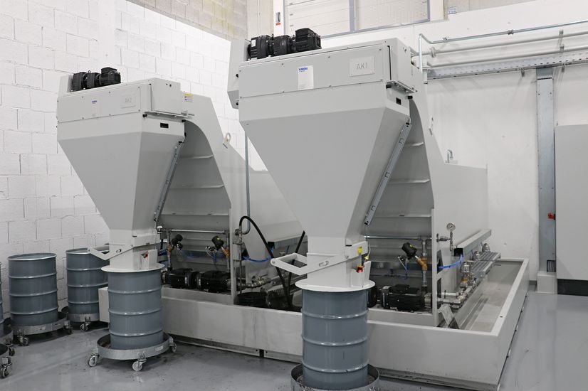 Cela inclut également le système d’évacuation des boues extrêmement efficace qui, en plus de la sédimentation dans le réservoir de fluide usagé, comprend un concentrateur automatique qui sépare en outre le carbure rétrolavé des cartouches filtrantes. Anton Pfanner explique : « Nous récupérons environ un baril de 400 kg de carbure par mois avec l’installation d’épuration d’huile. Pour la solution aqueuse, il s’agit actuellement d’environ quatre fûts, ce qui est dû à la surépaisseur plus importante. Nous envoyons les boues de rectification à notre entreprise sœur Stadler Metalle à Türkheim. Une fois traité, le carbure recyclé est réutilisé dans nos ateliers ».