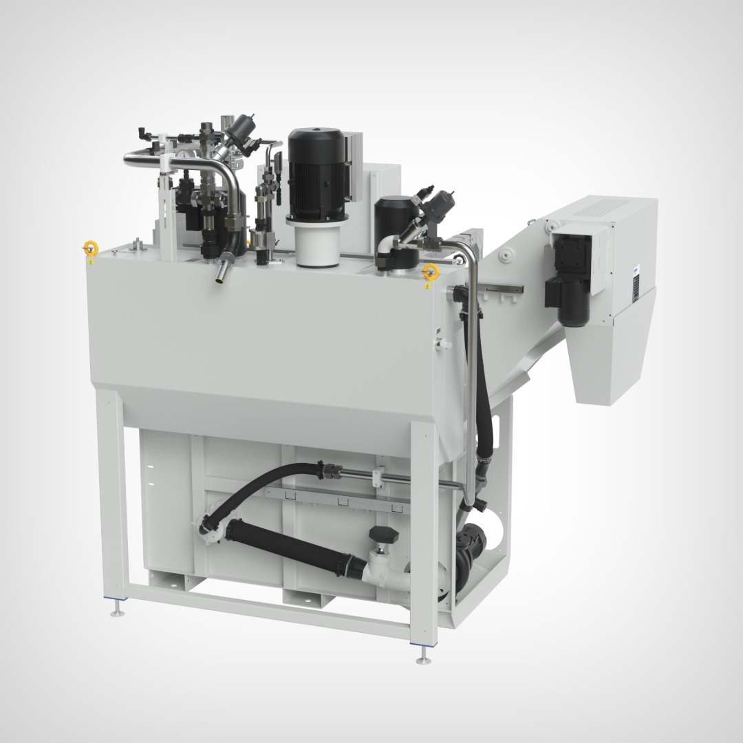 Bande filtrante compacte, à banc incliné, pour nettoyage de réfrigérants lubrifiants avec non-tissé filtrant. Avec technologie du vide de base. La performance de filtration peut atteindre 1 000 l/min par unité.
