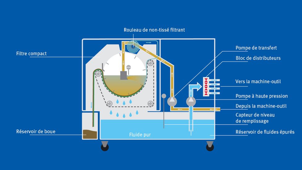 Filtration efficace grâce au filtre à bande | • Concentration de particules fines réduite |