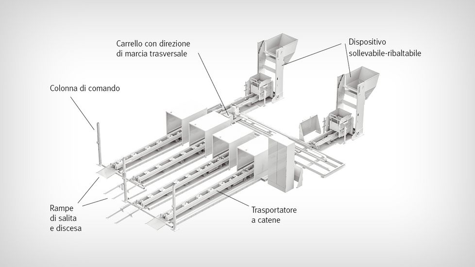 L'operatore della macchina spinge i carrelli dei trucioli dalla macchina all'impianto di trattamento. Dopo averlo inserito in uno dei due nastri trasportatori disponibili, l'addetto registra tramite codice a barre quali trucioli sono presenti all'interno. A questo punto il processo di smaltimento si avvia automaticamente. Ora i trucioli possono essere consegnati all'azienda di riciclaggio asciutti e suddivisi per tipo. Ciò si riflette in un aumento della retribuzione.
