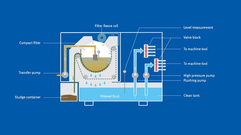 L'impianto ad alta pressione LubiCool®-L di KNOLL è un sistema compatto ad alta pressione per macchine utensili ad asportazione di trucioli, in particolare per centri di lavorazione medio-piccoli nonché per torni. L'impianto serve per la depurazione del KSS e per l'alimentazione ad alta e bassa pressione della macchina.