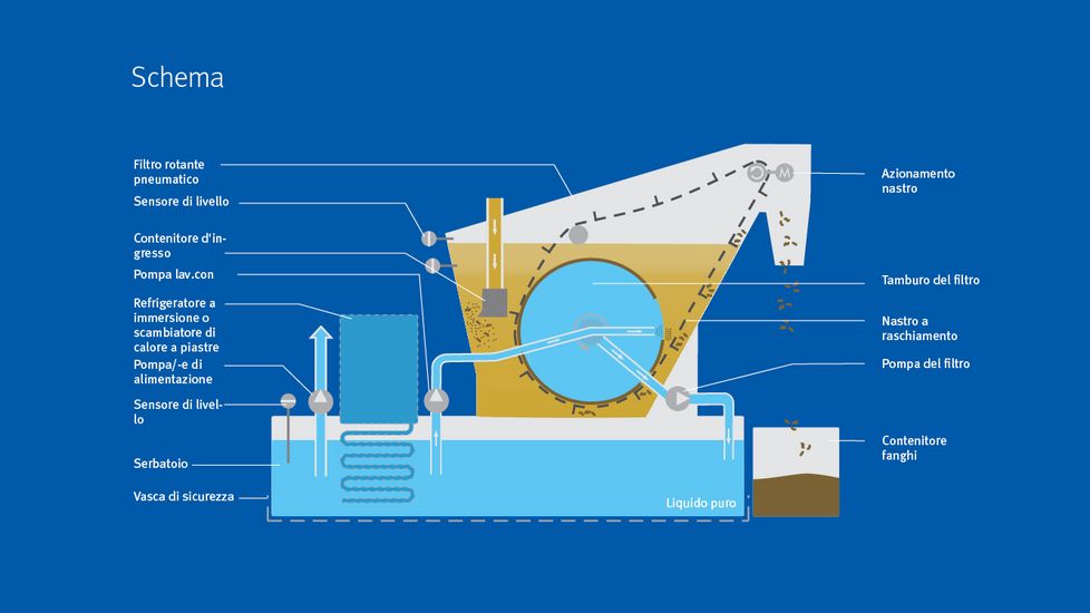 I filtri rotanti pneumatici VRF di KNOLL sono filtri a controlavaggio per migliorare la qualità dei lubrorefrigeranti usati per le procedure di lavorazione con asportazione di trucioli.
