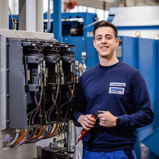 Da in meiner Familie einige Elektroniker sind, hatte ich bereits von klein auf mit diesem Beruf immer wieder etwas zu tun. Nach einem Praktikum bei KNOLL war ich dann überzeugt, dass dieser Beruf mir Spaß macht und zu mir passt.