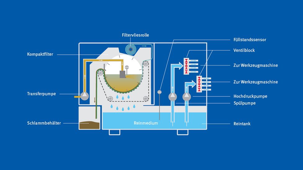 Effektive Filtration durch Bandfilter | • Reduzierte Aufkonzentration von Feinstpartikeln |